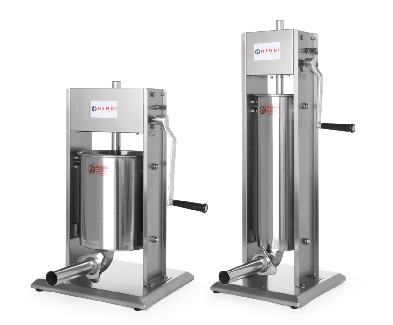 Struttura, cilindro e pistone in acciaio. Attrezzata con un sistema di riempimento a due velocità facile da usare. Il pistone può essere facilmente rimosso per il riempimento e la pulizia. Dotata di cuscinetti e ingranaggi in acciaio temprato, resistenti alla pressione. Con serie di quattro imbuti in acciaio, diametro: 16/22/32/38 mm. Acciaio inox.