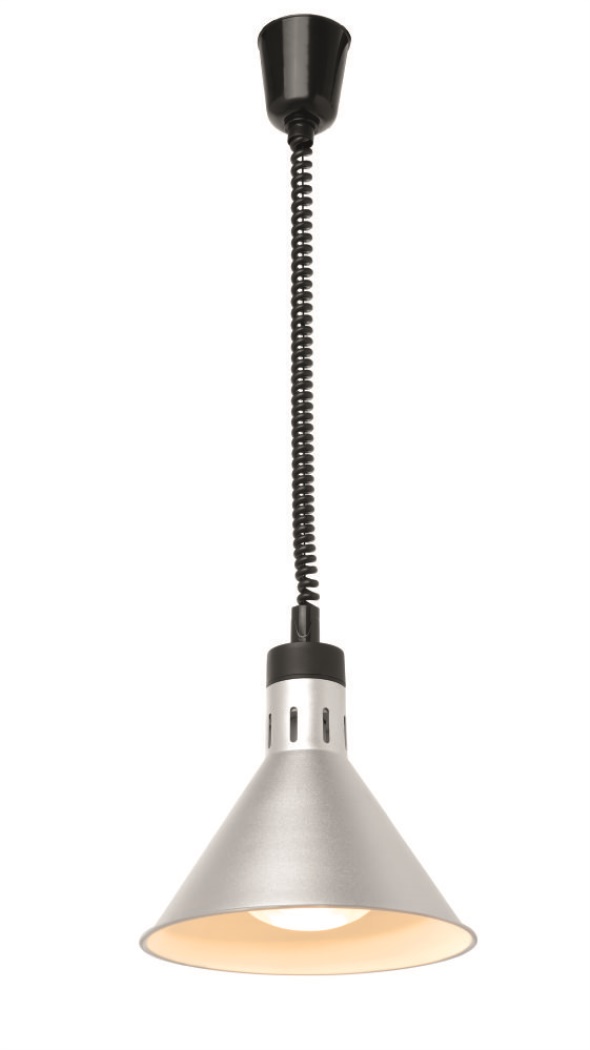 Lampada riscaldante a infrarossi a sospensione - Hendi - forma conica - con cavo regolabile da 70 a 150cm - lampadina inclusa - alluminio - argento - 273869