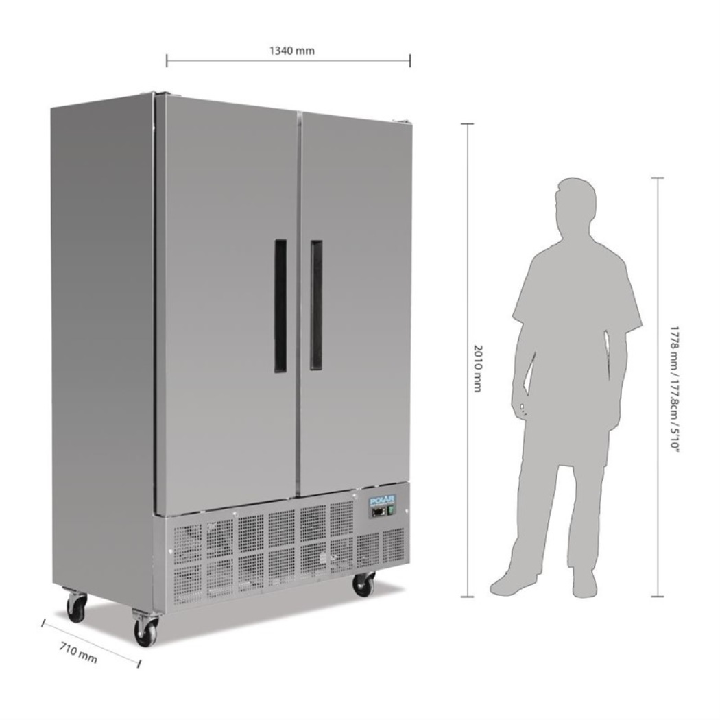 Raffreddatori a doppia porta Slimline ideali per piccoli spazi. Il sistema di raffreddamento posizionato in basso aspira l'aria dalla parte più fredda della cucina. Porte autobloccanti chiudibili a chiave. Adatto per un utilizzo medio-leggero. Dotato di controller completamente automatico.