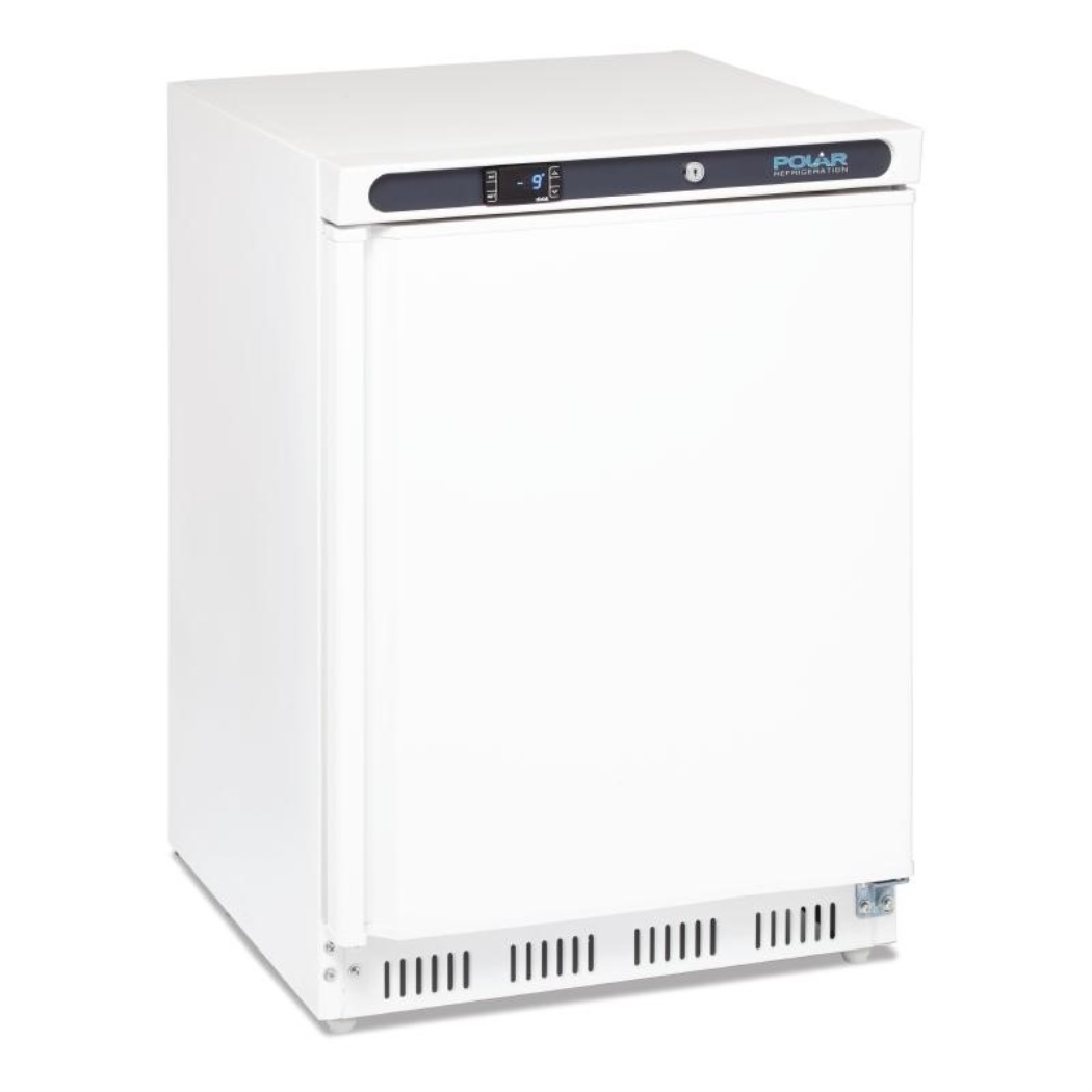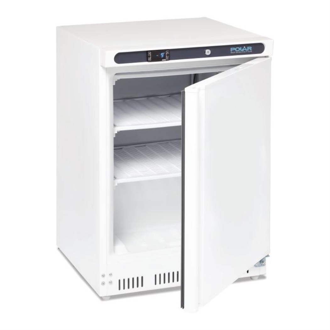 Modello con tavolo bloccabile con display digitale della temperatura. Dotato di ruote posteriori per manovrare sotto un piano di lavoro. -CFC.