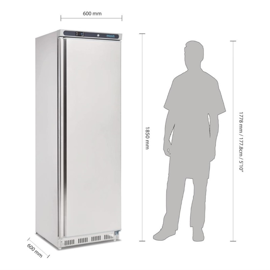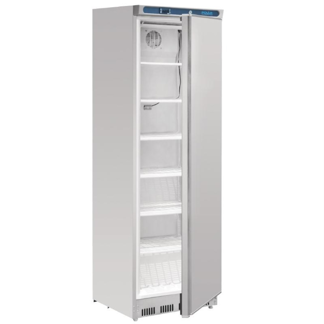 Raffreddamento per uso leggero con display digitale della temperatura LED e controllo elettronico. Alle ruote posteriori per un facile spostamento. Frigorifero ha 4 griglie regolabili e freezer ha 7 griglie fisse. -CFC.