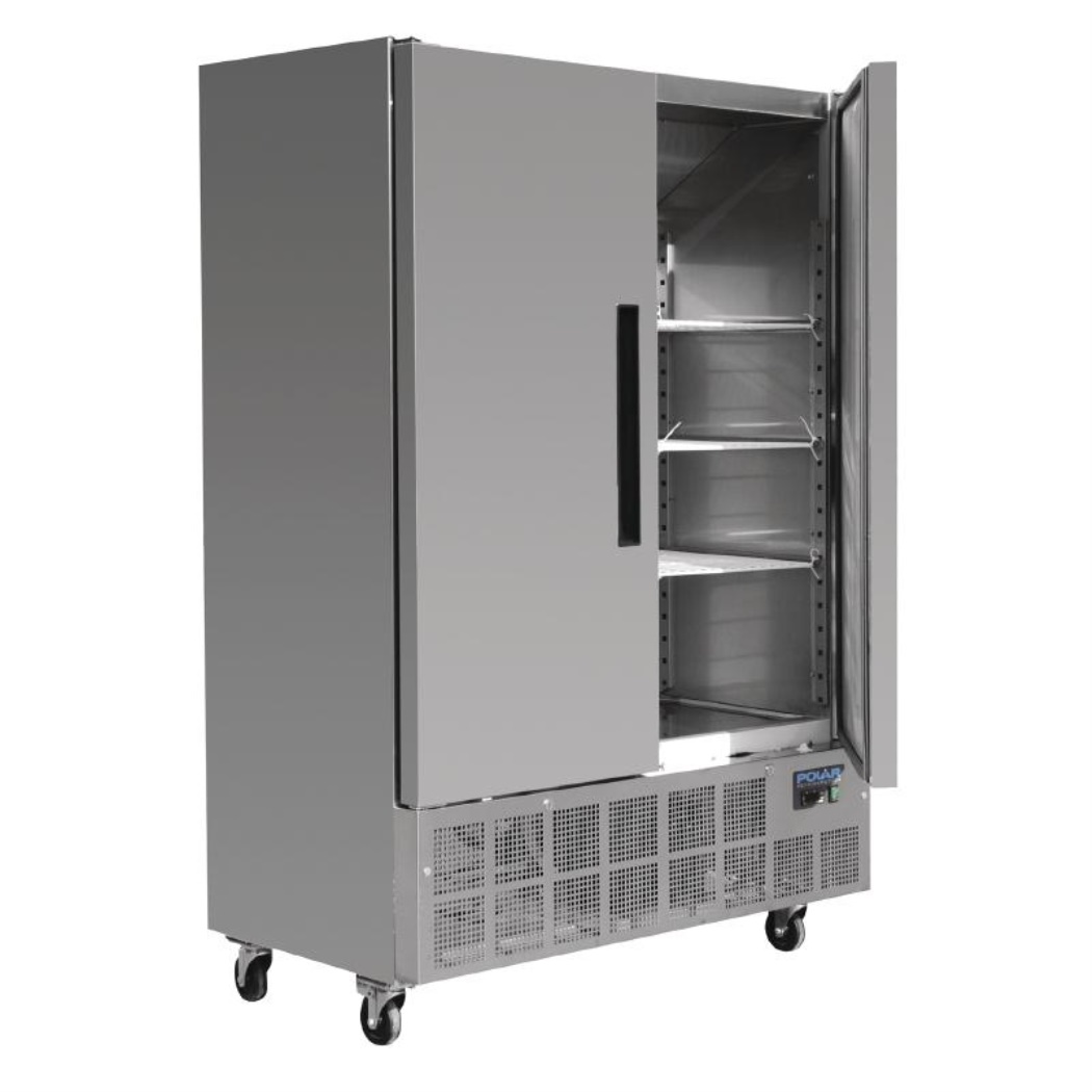 Raffreddatori a doppia porta Slimline ideali per piccoli spazi. Il sistema di raffreddamento posizionato in basso aspira l'aria dalla parte più fredda della cucina. Porte autobloccanti chiudibili a chiave. Adatto per un utilizzo medio-leggero. Dotato di controller completamente automatico.