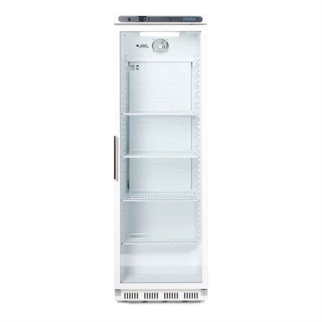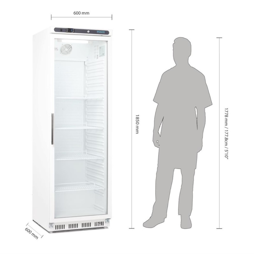 Display di raffreddamento con porta in vetro con serratura e regolatore elettronico, illuminazione interna e posteriore con ruote. Senza CFC.