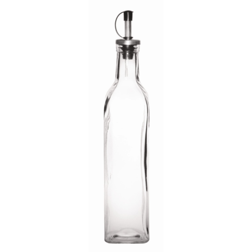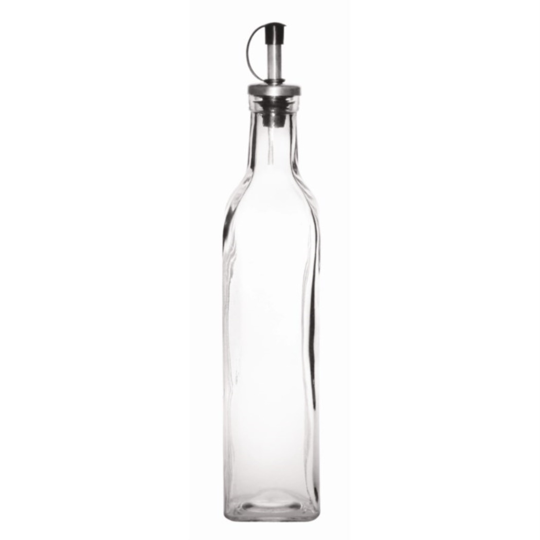 Una bottiglia di vetro, ideale per l'olio d'oliva e altre salse.Dotato di tappo di chiusura.Lavabile in lavastoviglie50clPer 6 pezzi