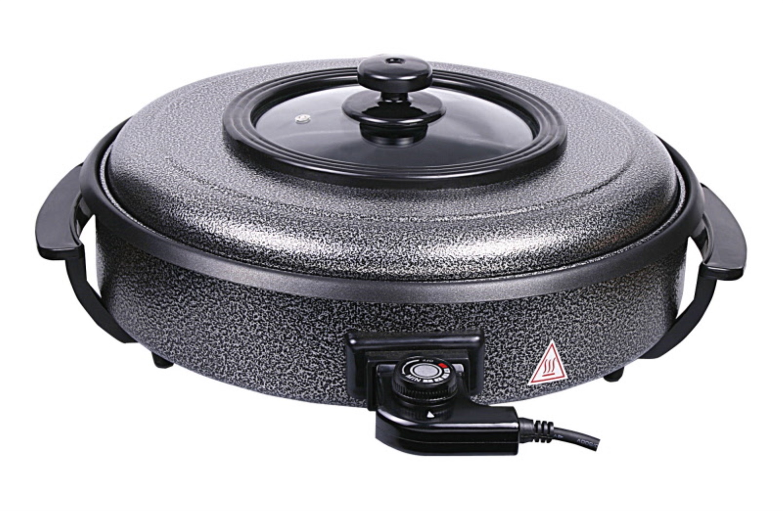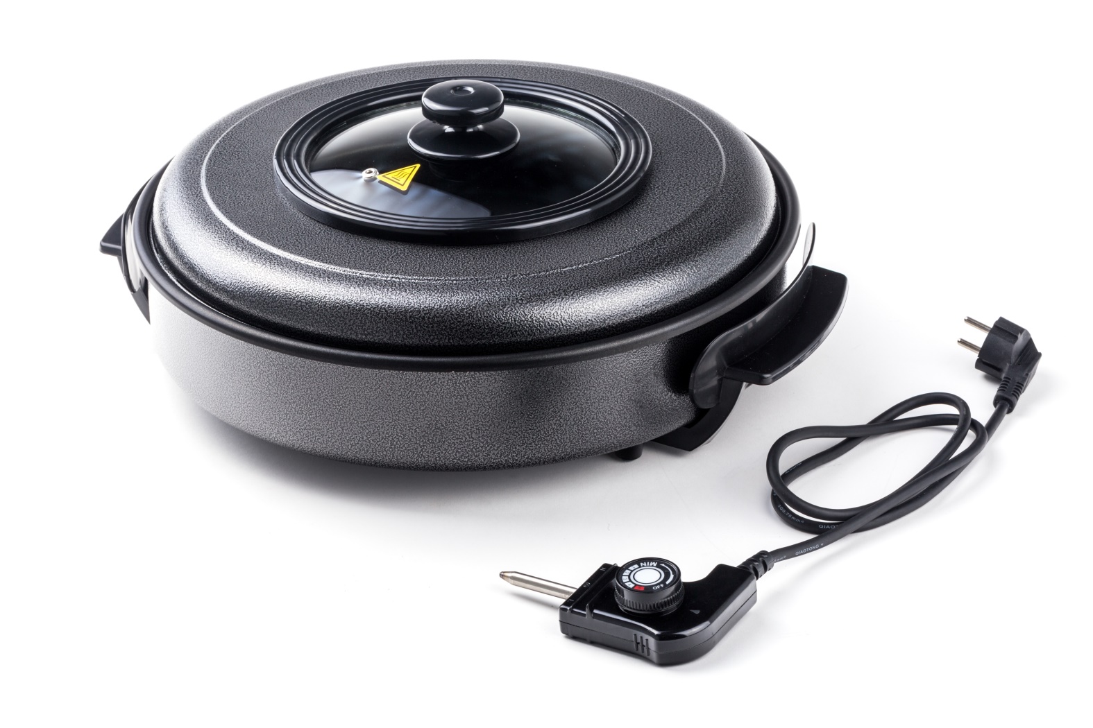 In alluminioCon strato antiaderenteTermostato removibileIncluso coperchio in vetro e due manici isolati- AlluminioØ500x(H)190 mm230 V1400 W