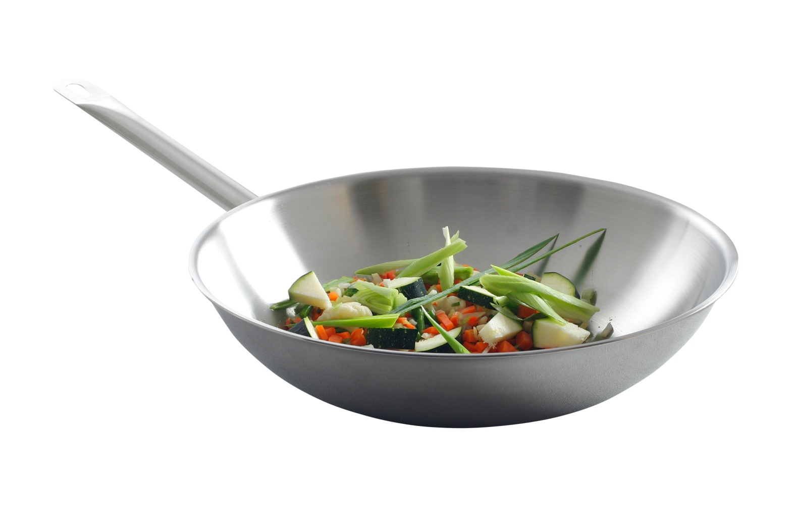 Con fondo piatto diam. 145 mm, 3 strati acciaio inox 18/10 esterno 0,5mm intermedio alluminio 1,5mm ed interno acciao 18/8 0,4mm. molto veloce nel prendere temperatura