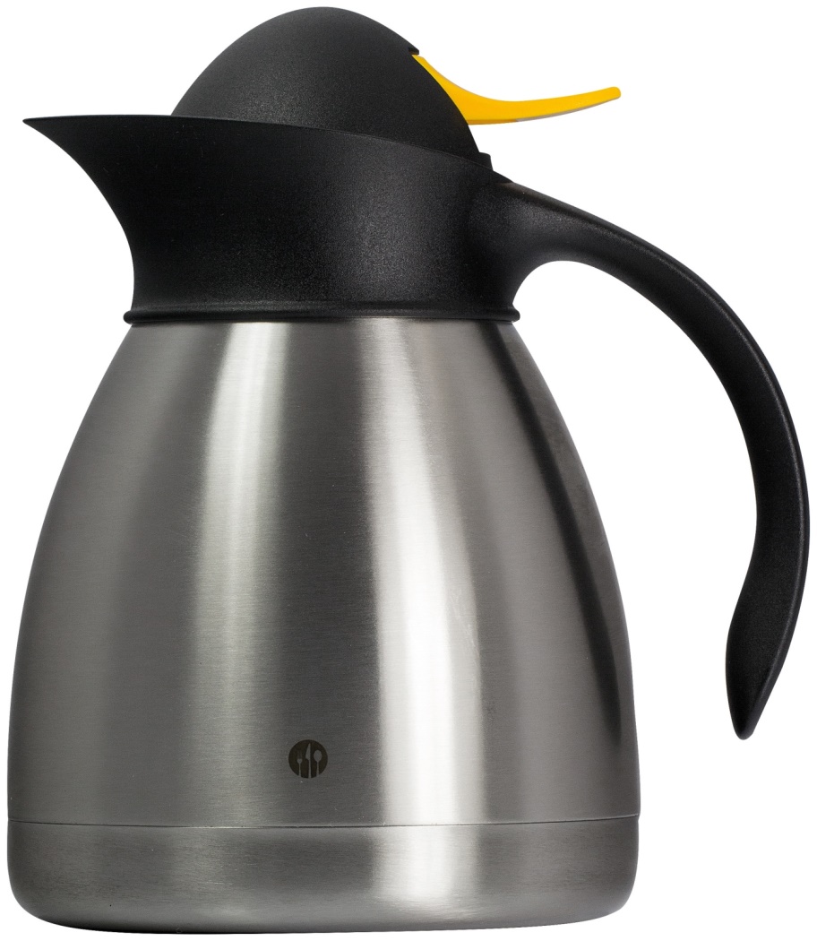 Doppia parete in acciaio inox con chiusura a pressione colore gialloCorpo acciaio inox,leva di erogazione e manico sono in polypropylene